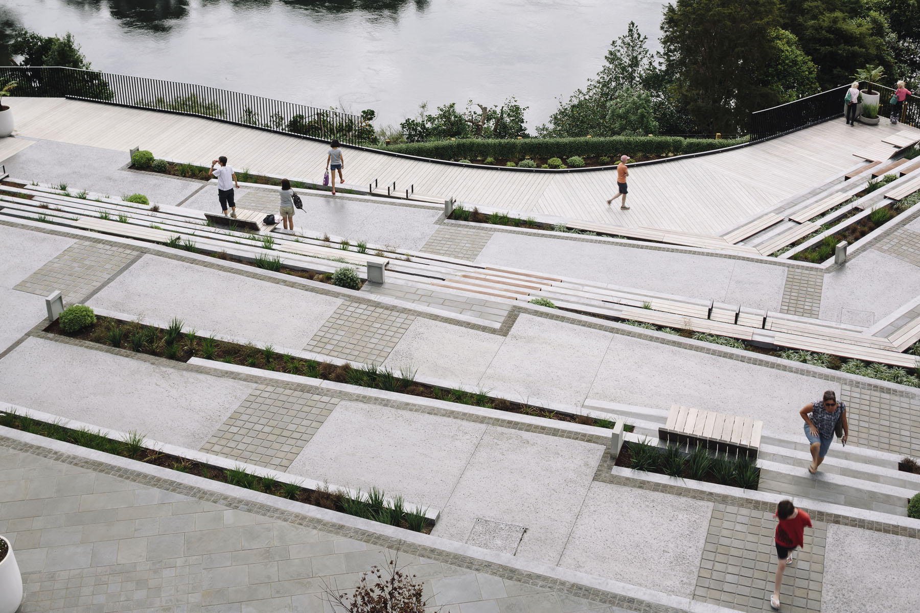 Il progetto ideato dallo studio Edwards White Architects e messo in opera dalla Schick Civil Construction, consiste in un ampio parco urbano affacciato sul fiume Waikato e inserito nel cuore del quartiere degli affari di Hamilton, Nuova Zelanda.